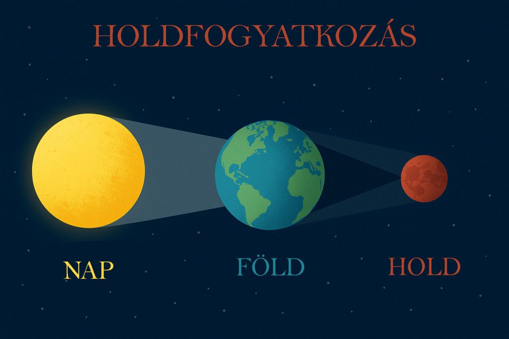 Képzeld el, hogy a Nap, a Föld és a Hold olyan, mint három színházi reflektor. A Nap a legerősebb fény, ami mindig megvilágítja a Holdat. A Hold fénye valójában nem saját fény, hanem a Napról visszaverődő sugárzás. De mi történik, ha a Föld beáll a Nap és a Hold közé?
